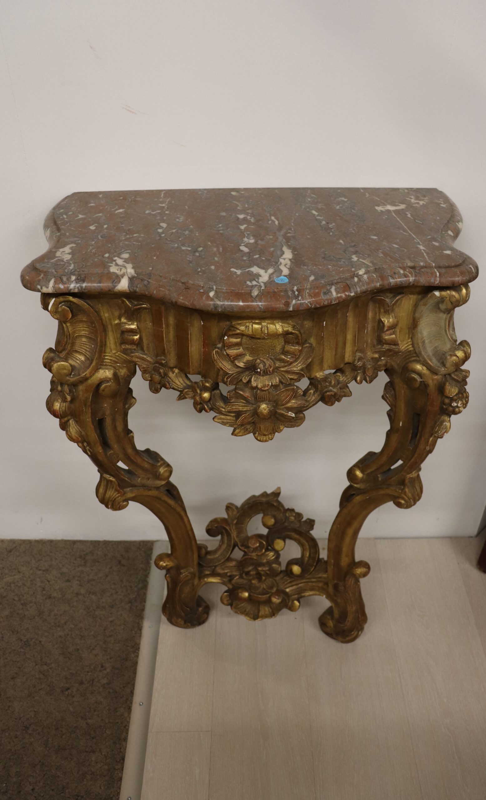 Console en bois sculpté doré, plateau en marbre env. 1850